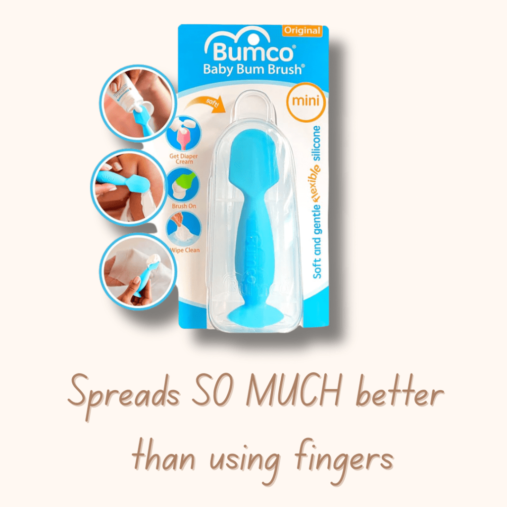 If you haven’t used one of these yet… prepare to be amazed. This small silicone tool helps apply diaper cream without the mess, keeps your hands clean, and spreads the product more evenly.