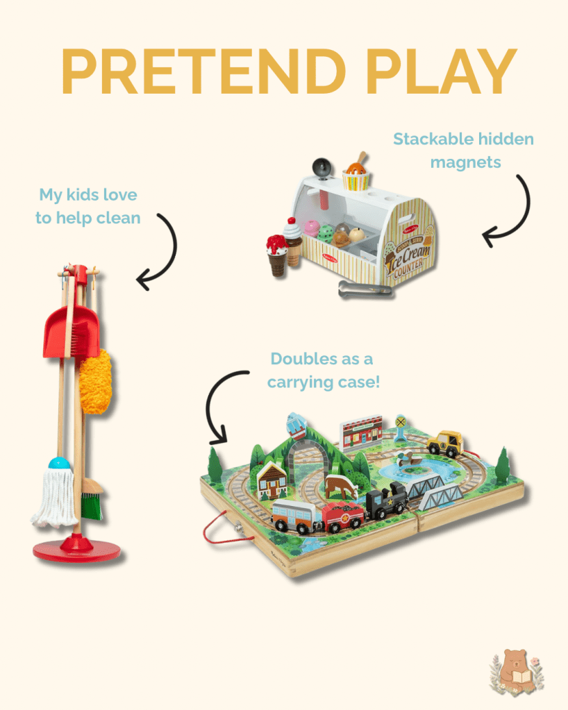 Below, I’m sharing some of our absolute favorite Melissa & Doug toys, organized by theme, and why they’re worth adding to your playroom.